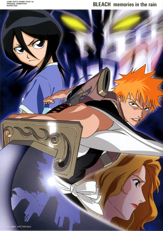 Bleach – Memories in the Rain: Es la primera OVA de Bleach. Se emitió en el Jump Festa 2004 Anime Tour (exposición anual donde se publican materiales inéditos sobre diversas series) y luego se llevó a DVD. Transcurre entre los capítulos 8 y 9 del anime. Se centra principalmente en los sentimientos de Ichigo en relación a la muerte de su madre y es una versión modificada del mismo episodio.